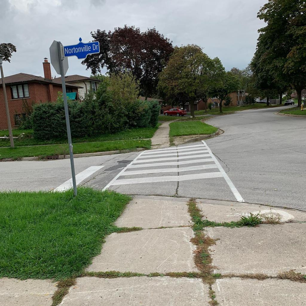 Below are some quotes from the report, along with illustrative photos of my walk to the drug/grocery store, and some comments. The two way trip was 2km, mainly along Davisbrook Blvd and Huntingwood Drive to the Warden Plaza Shopping Mall on Warden Avenue and back.