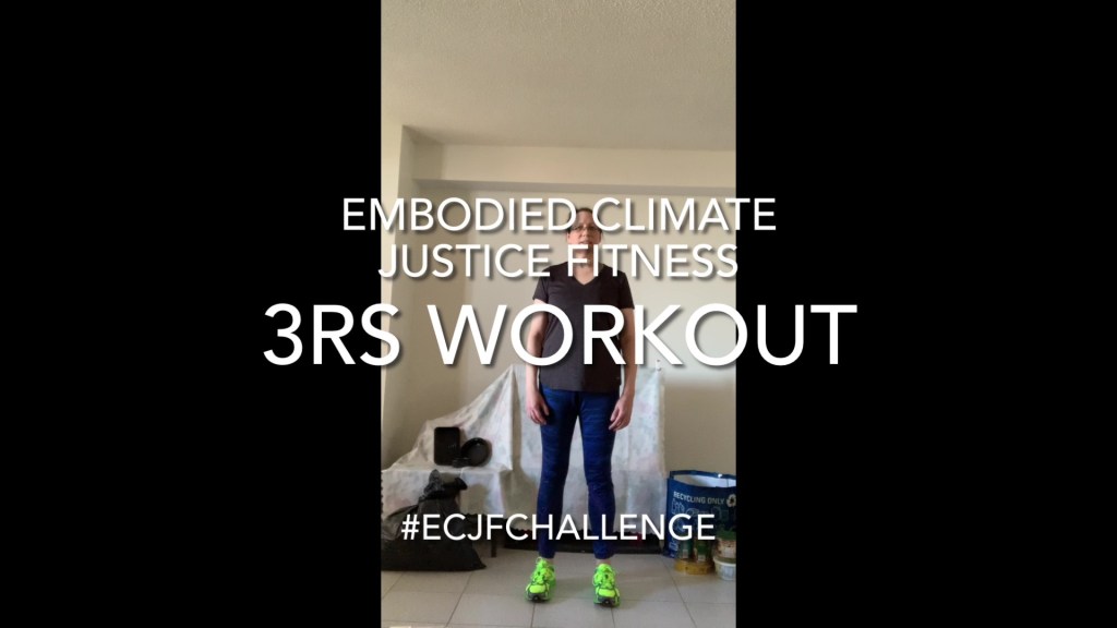 In celebration of Waste Reduction Week, I’m introducing a new Embodied Climate Justice Fitness (ECJF) activation video focused on the 3Rs: Reduce, Reuse, and Recycle. While I demonstrate a standing version of this 5:30-minute movement practice, please feel free to modify the movements for a seated version if that suits your abilities and/or preference. For example, you can simply sit and clap along to the beat if that’s what you want from your workout.