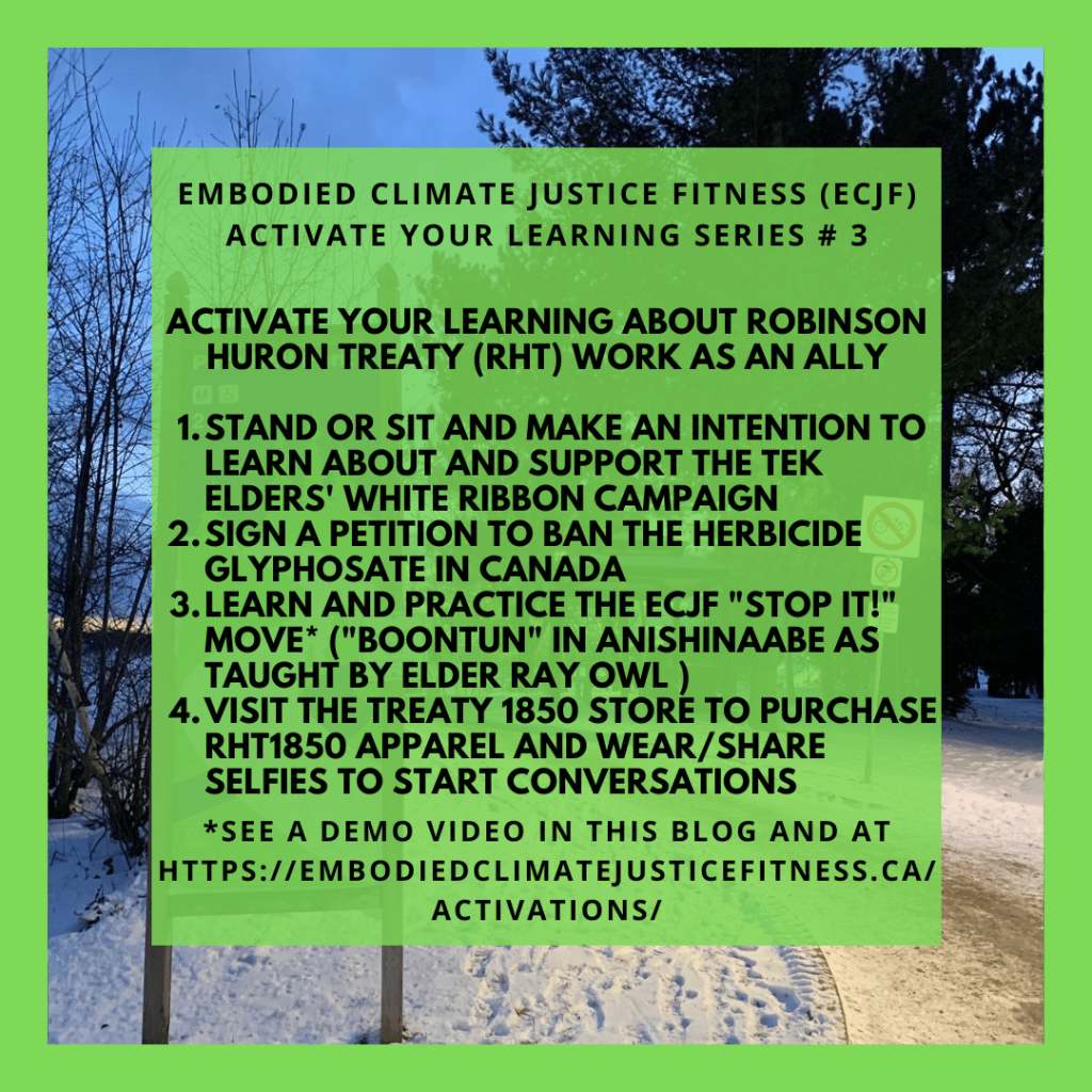I encourage you to read the article “The White Ribbon Campaign” by Susan Chiblow on pages 58-59 of E-Wiindamaagejig: The Robinson Huron Treaty Times Issue 3 2022. This magazine has been an important part of my learning about the Treaty. So has listening and learning by virtually attending the RHT Gathering in September 2022 and the RHW Treaty Week events in November 2022. You can also read the first two issues of the magazine on the Robinson Huron Waawiindamaagewin website. Here are two quotes about glyphosate and the White Ribbon Campaign from Issue 3: