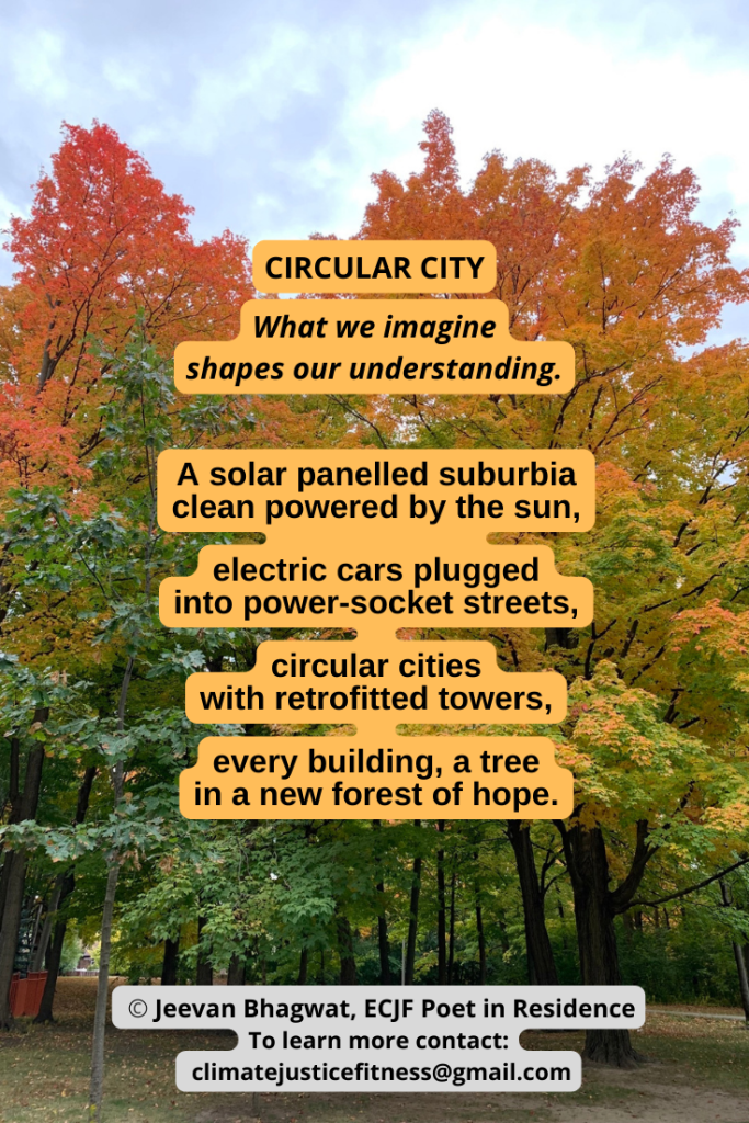 This fourth poem by Jeevan Bhagwat titled “Circular City” was inspired by an article by architect William McDonough referenced in the text and a graphic in my ECJF Blog post “Growing the Circular Cities Movement Through Cultivating Creative Climate Communication“. This poem and the blog post celebrate Canada’s inaugural Circular Economy Month this October 2022. – Anna Nieminen