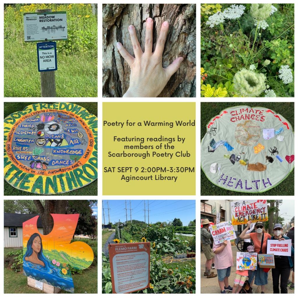 Featured below is the collective poem “Clarion Call for a Warming World” by members of the Scarborough Poetry Club in Ontario, Canada.